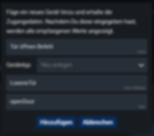 Gerätetyp wählen: Wähle oder erstelle den Gerätetyp, den Du hinzufügen möchtest (zum Beispiel: "door", "lights" usw.).
